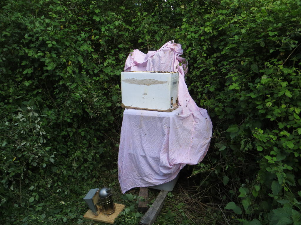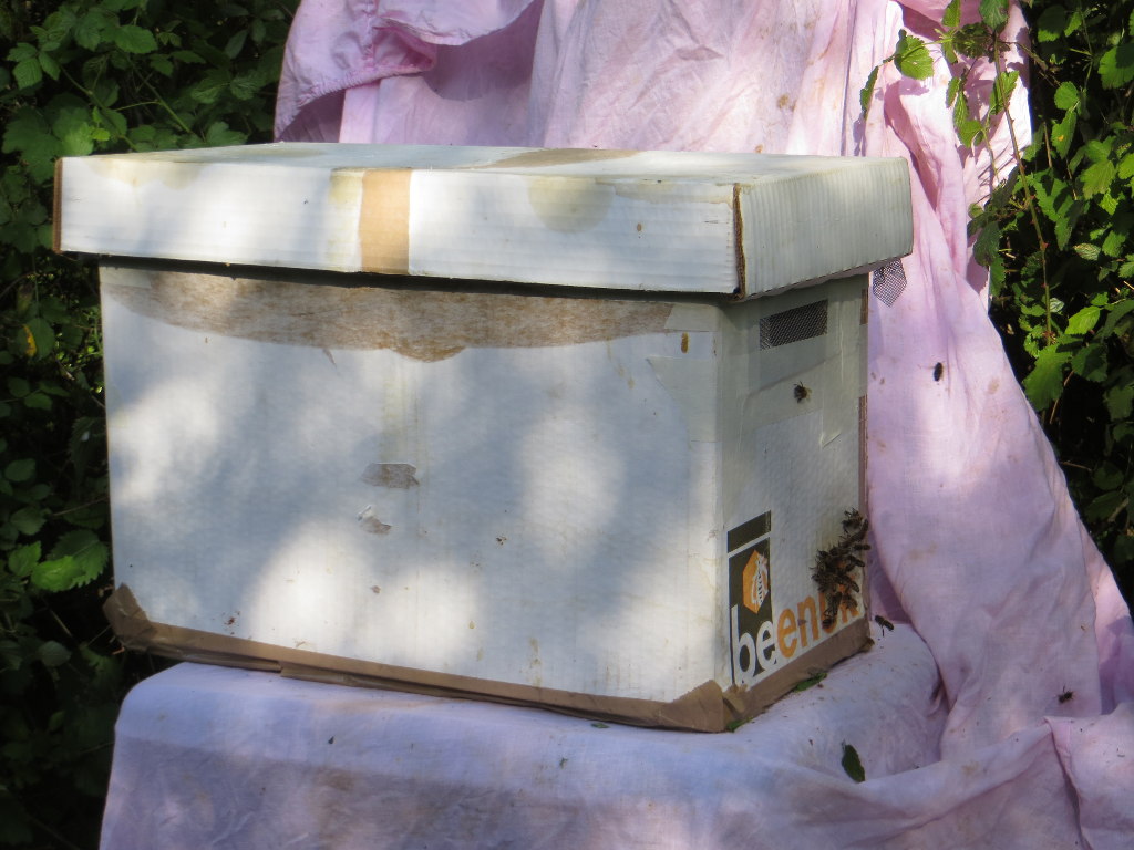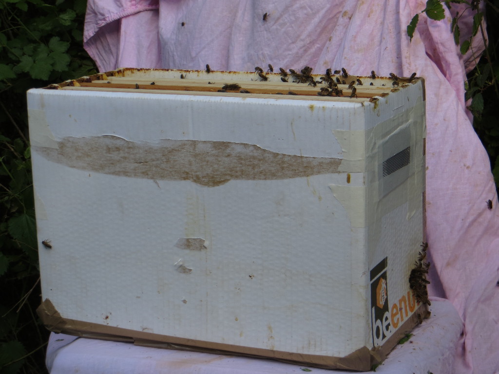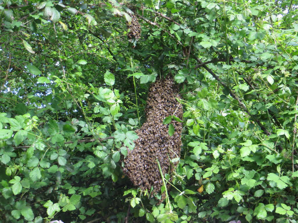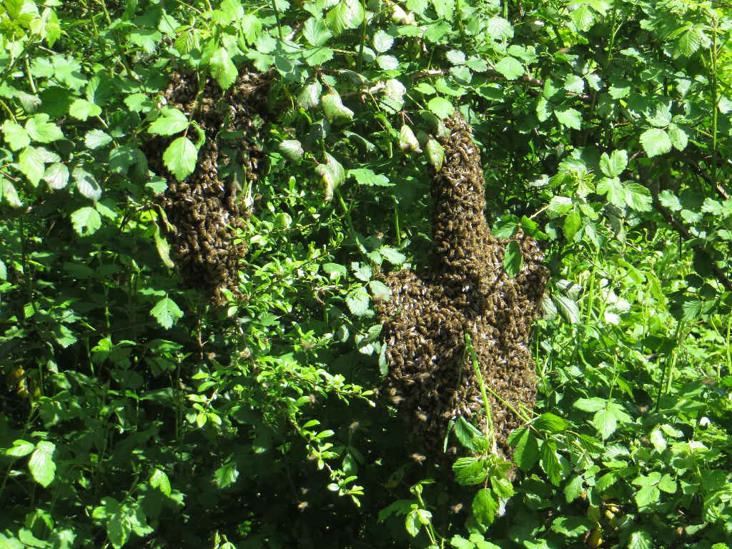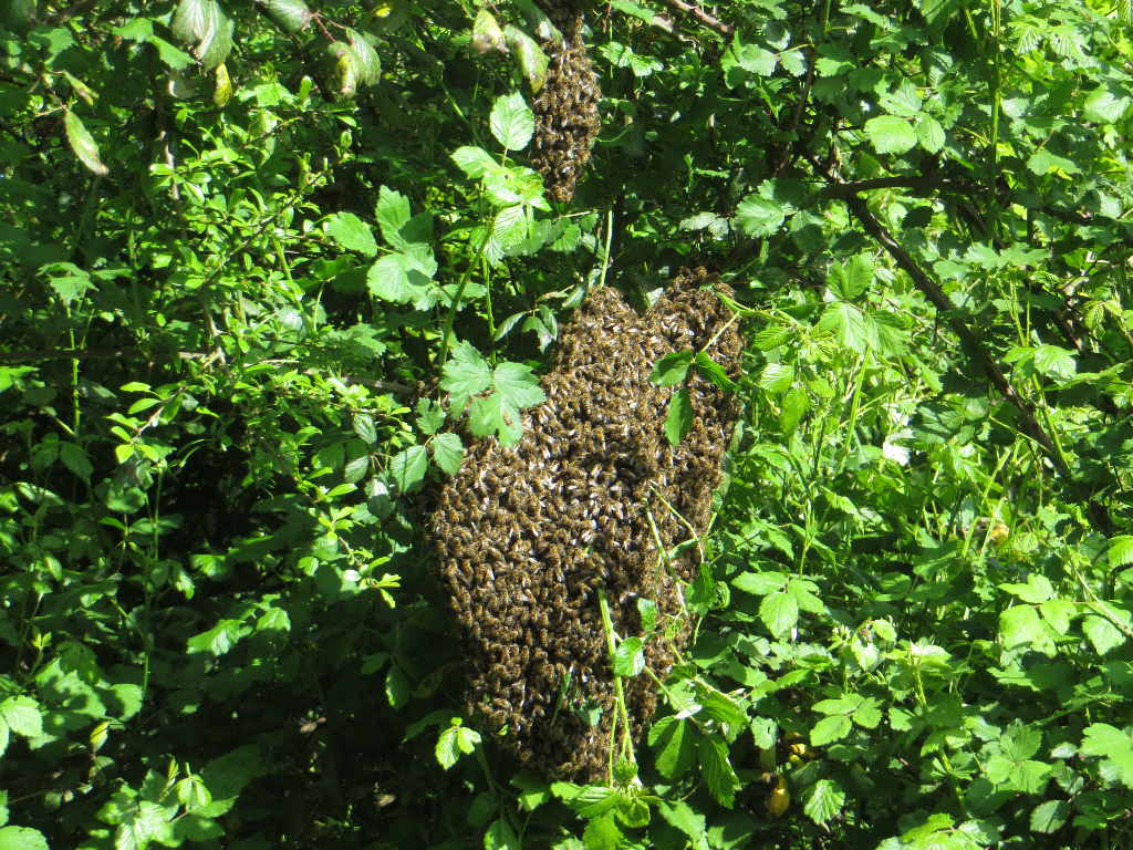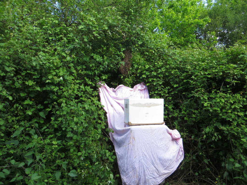 2015/05/06 : Essaim (9)Mis à jour : 1 novembre 2015 | Imprimer | Affichages : 1600 Dans l'après-midi ... un essaim chez moi : En détail : Il sort de ma ruche bleue, c'est un essaim secondaire. Il est placé dans ma ruchette en carton, et part chez Dany le soir même. Je le récupèrerai la semaine prochaine ... Précédent Suivant
