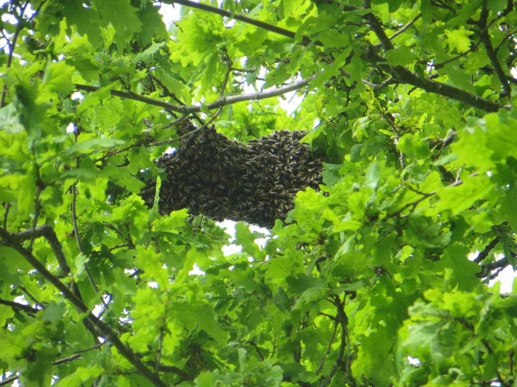 2016/05/06 : Essaim (8) - ratéMis à jour : 21 juin 2016 | Imprimer | Affichages : 1479 Sur notre site LC, en fin de journée ... En détails : On ne sait pas de quelle ruche il sort. Il est très haut placé dans un chêne, et nous devons nous résigner à l'y laisser ... Précédent Suivant
