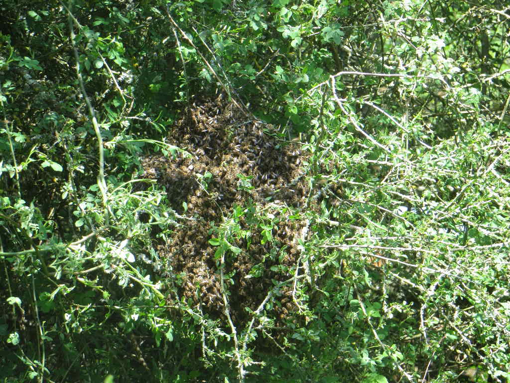 2016/05/15 : Essaim (11)Mis à jour : 15 mai 2016 | Imprimer | Affichages : 1601 Chez moi, ce midi ... En détails : Il sort (possiblement) de ma ruche P4 (bleue), dont ce serait le premier essaim (essaim primaire). Il est placé dans la ruchette en bois à Stéphane, puis déplacé sur le champ à LC. Précédent Suivant