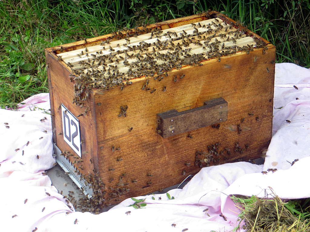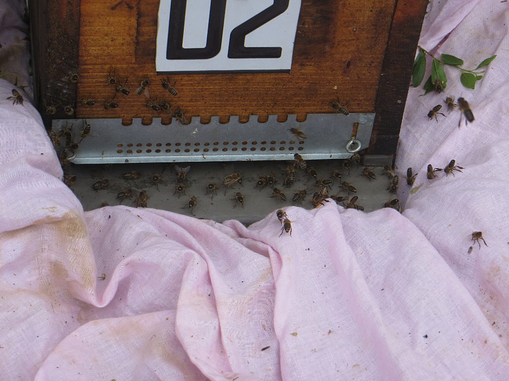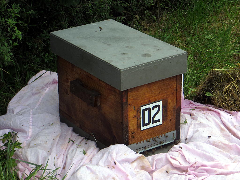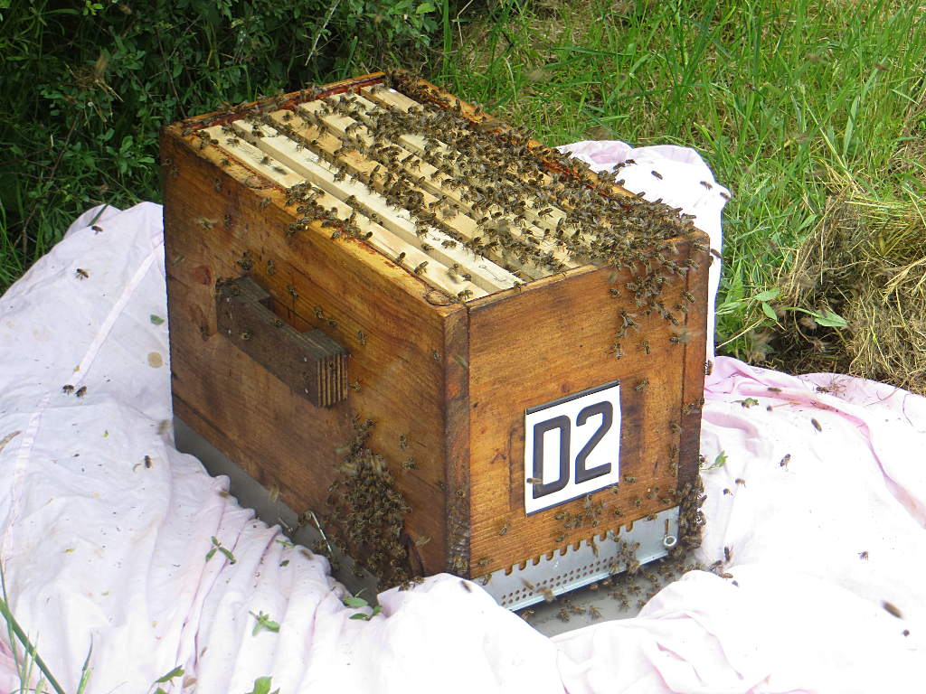 2016/05/16 : Essaim (12)Mis à jour : 18 mai 2016 | Imprimer | Affichages : 1586 Sur notre site de LF, en début d'après-midi ... En détails : Il sort de la ruche à Stéphane, dont c'est le second essaim (essaim secondaire). Je le place dans la ruchette en bois à Dany, puis le déplace sur le champ à LC.