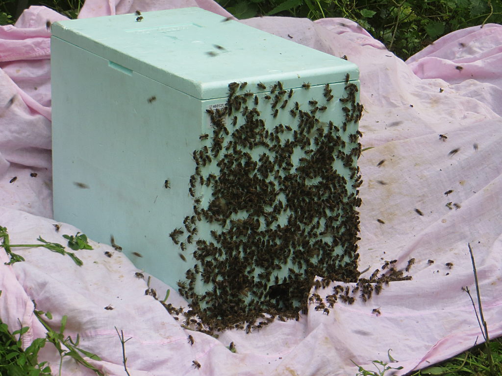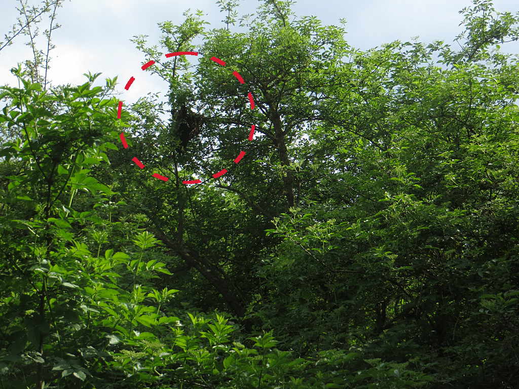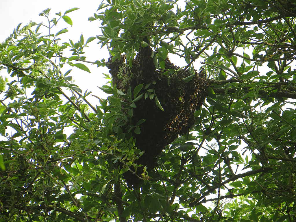 Chez moi, le second essaim,qui s'y prend à quatre fois pour se poser finalement dans un vieux sureau ...