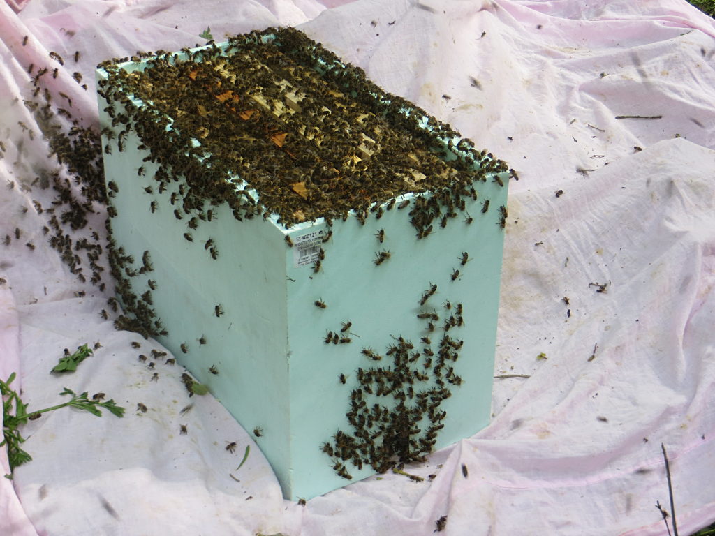 Il sort possiblement de ma ruche P6 (Rouge), dont ce serait le premier essaim (essaim primaire).
