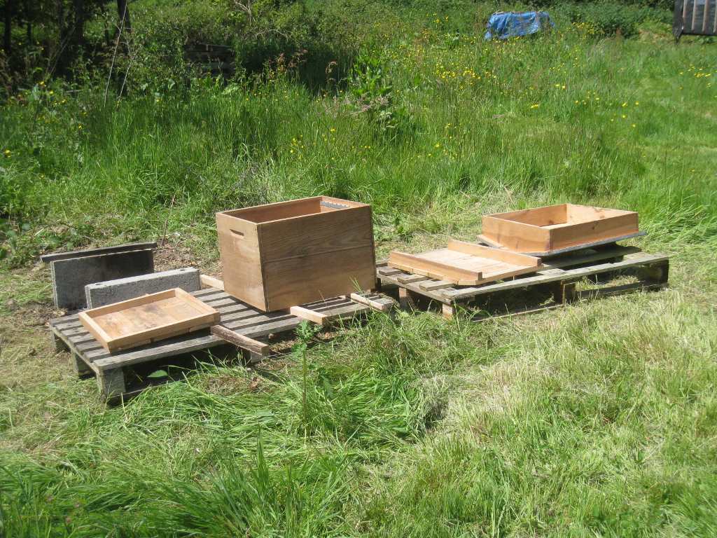 Heureusement, Stéphane récupère deux vieilles ruches 12 cadres et m'en donne une.