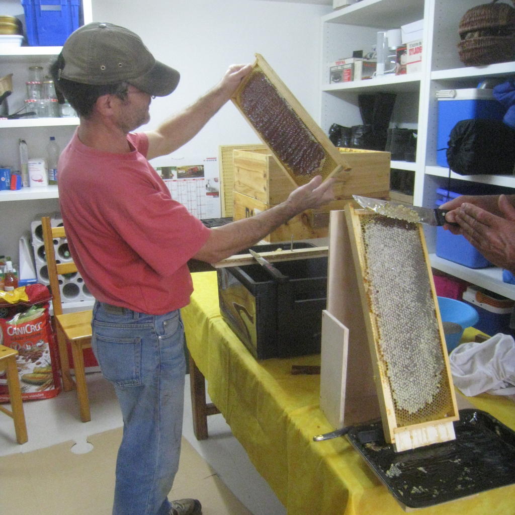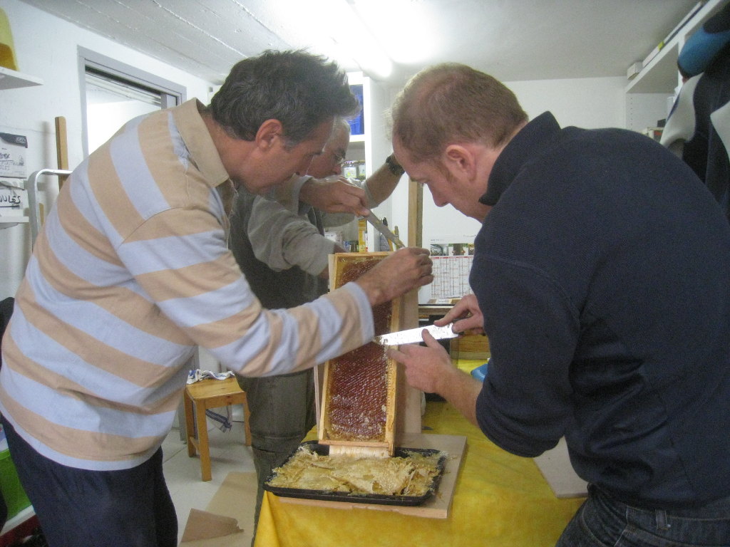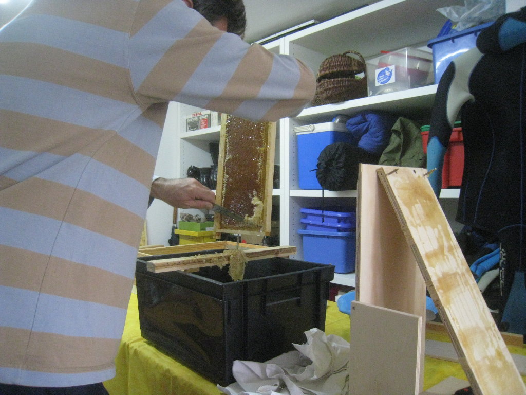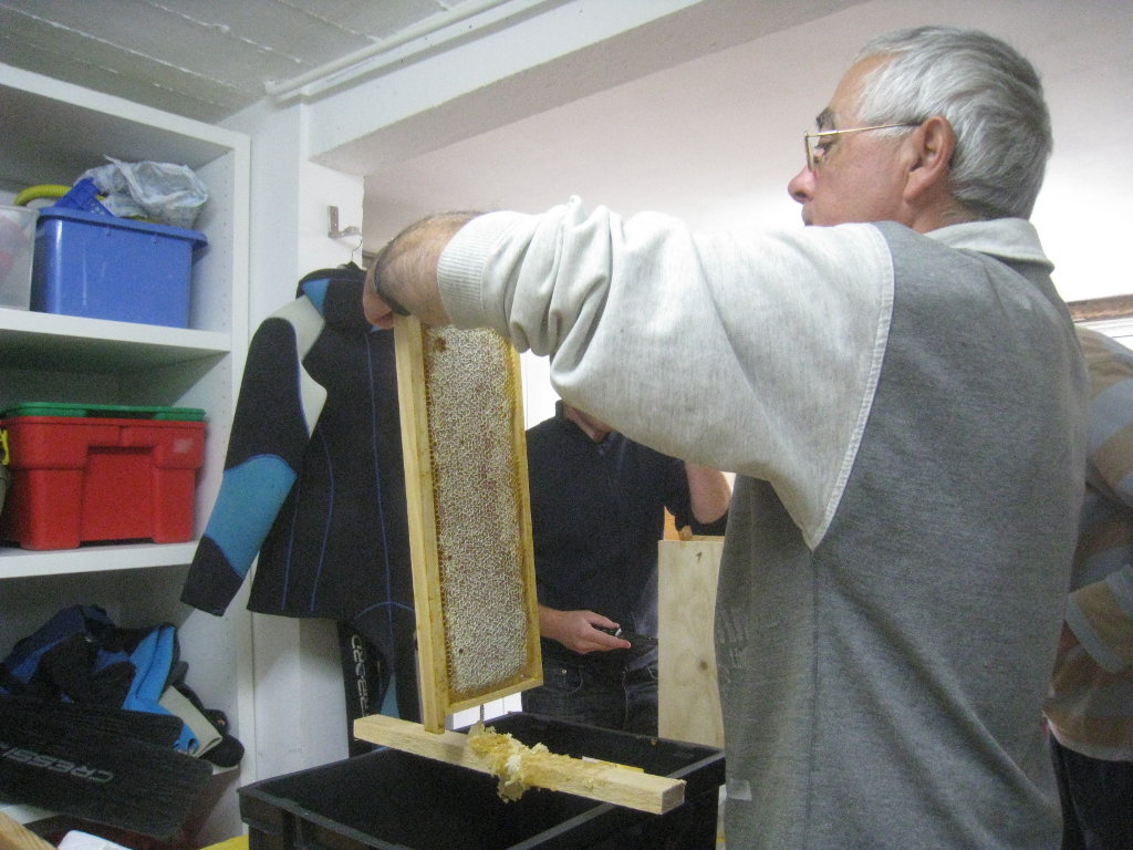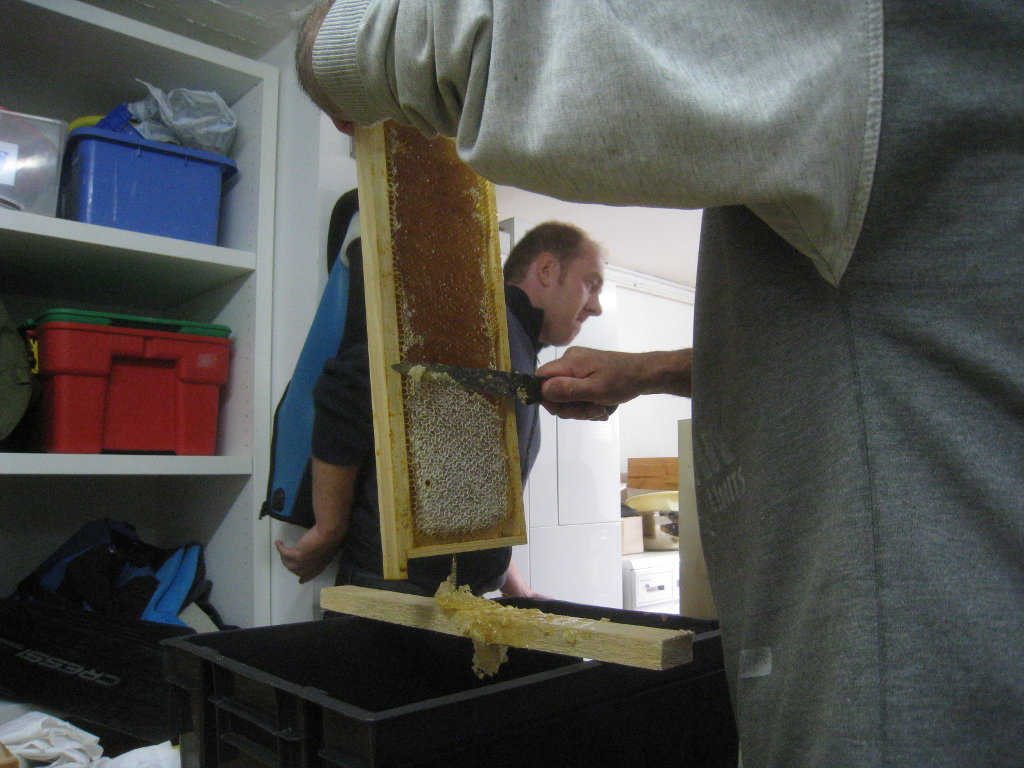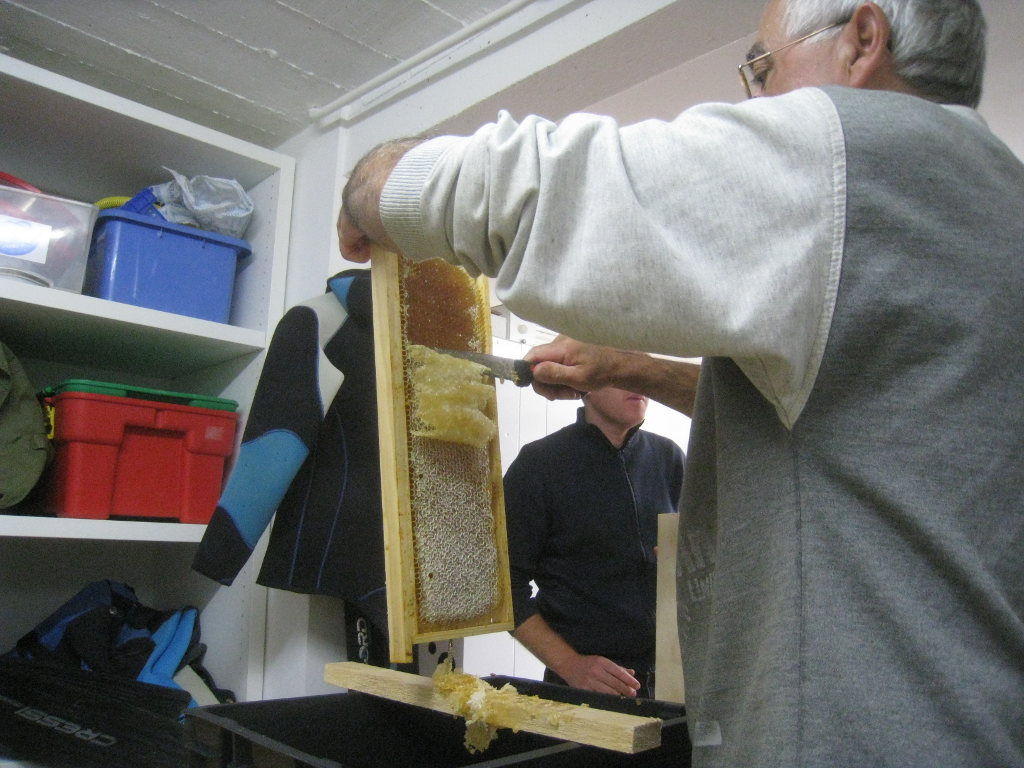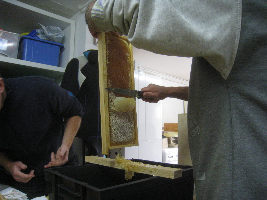 Cette étape consiste à retirer la fine couche de cire que les abeilles ont placé devant chaque alvéole pour protéger le miel.