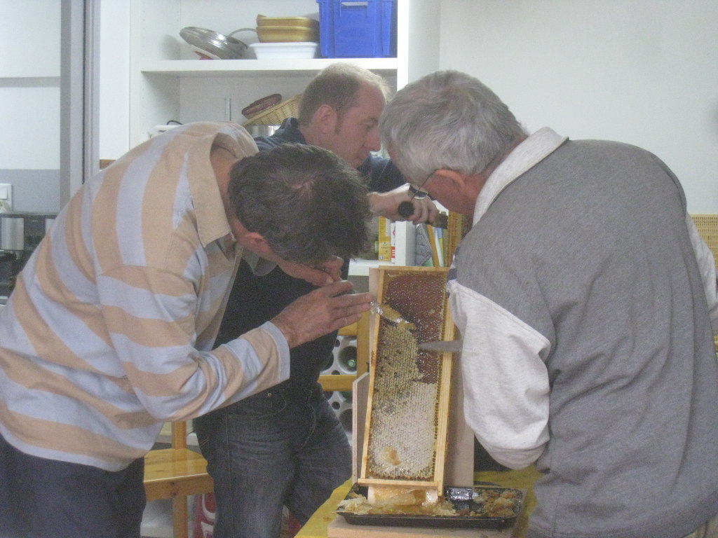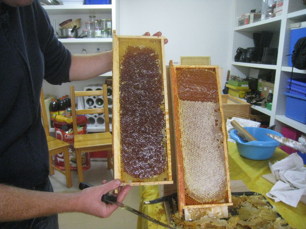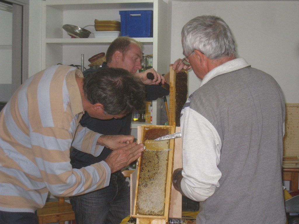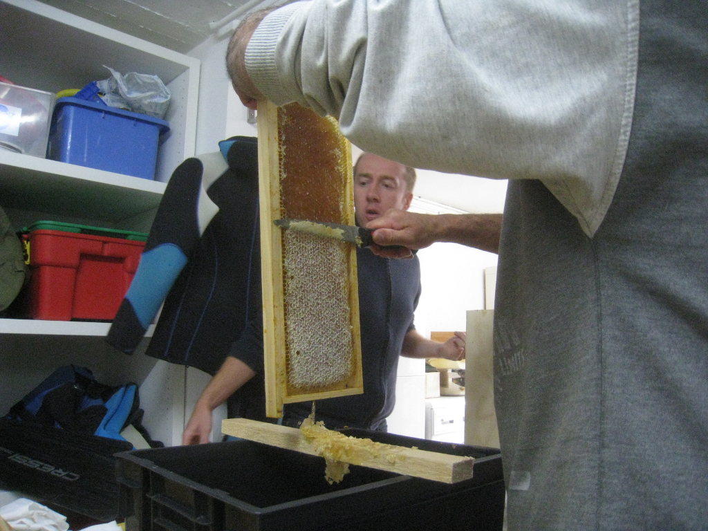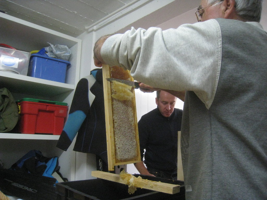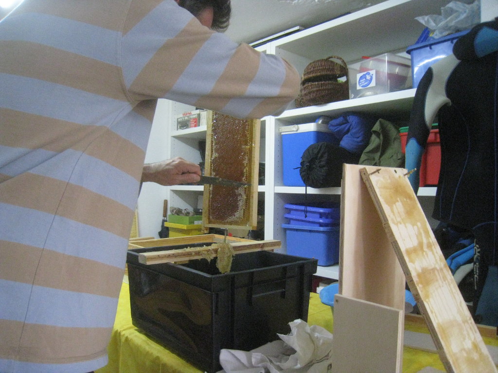 Cette étape consiste à retirer la fine couche de cire que les abeilles ont placé devant chaque alvéole pour protéger le miel.
