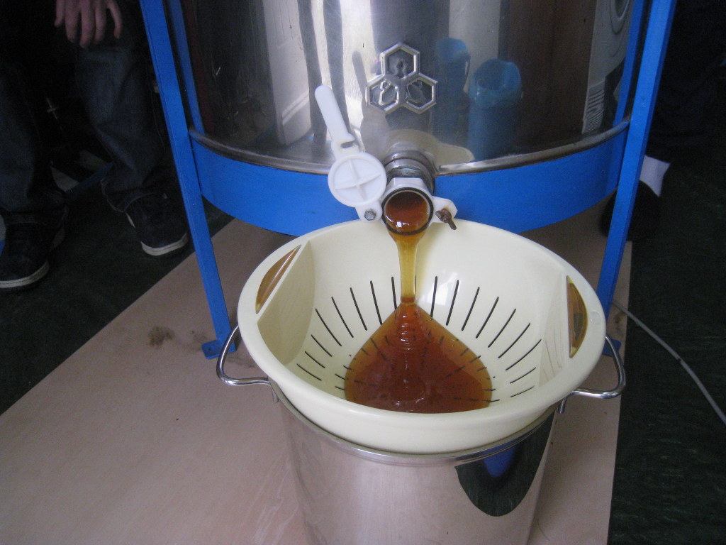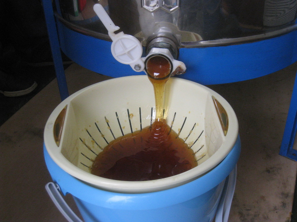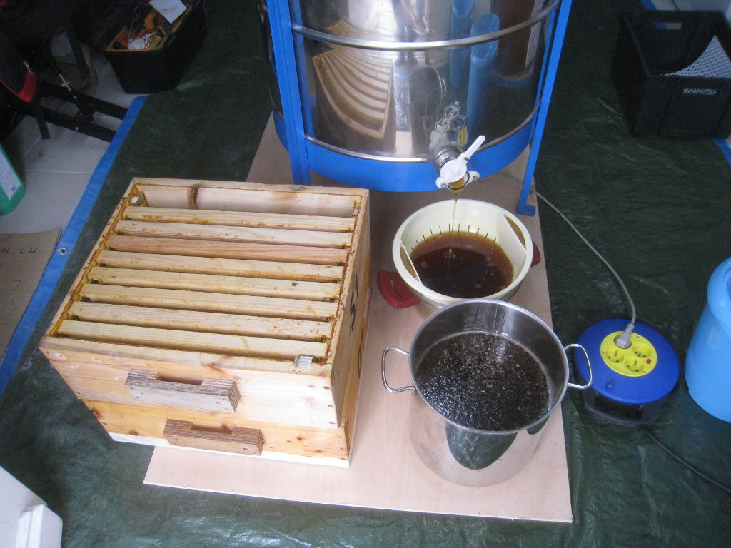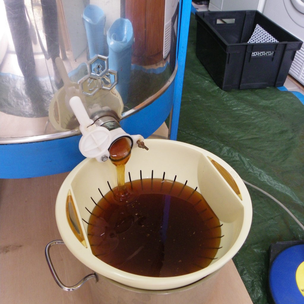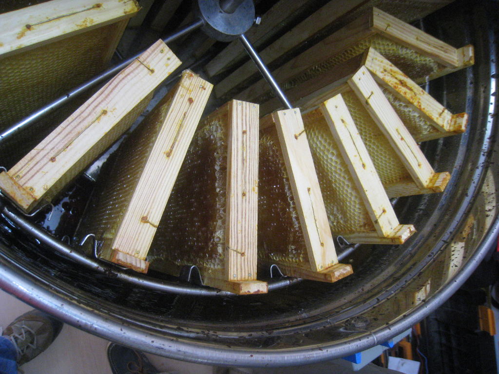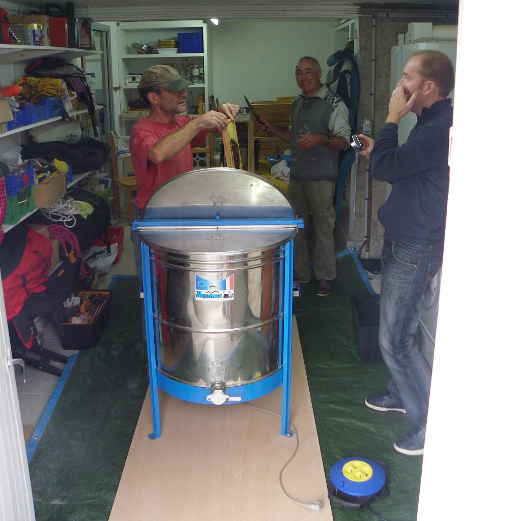 Deux passages à l'extracteur suffiront pour extraire le miel de nos cadres :