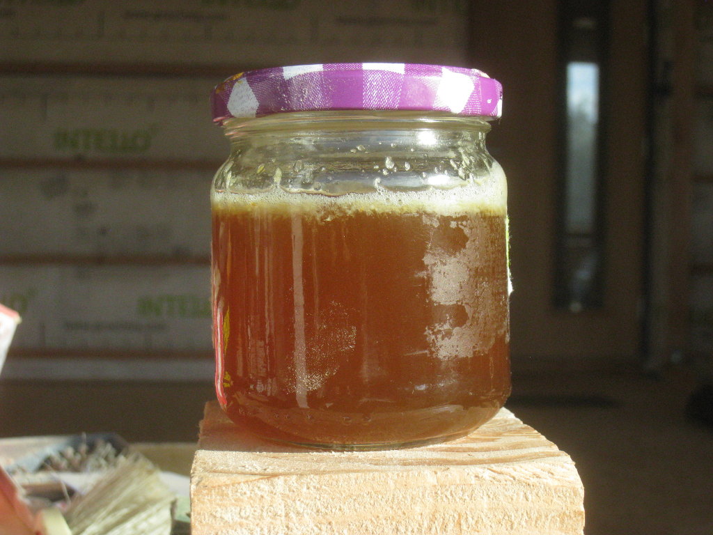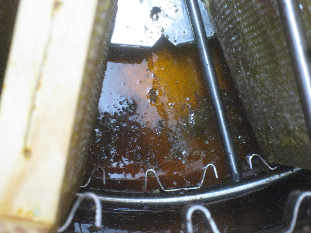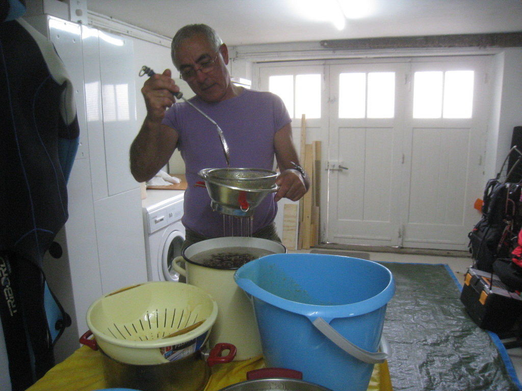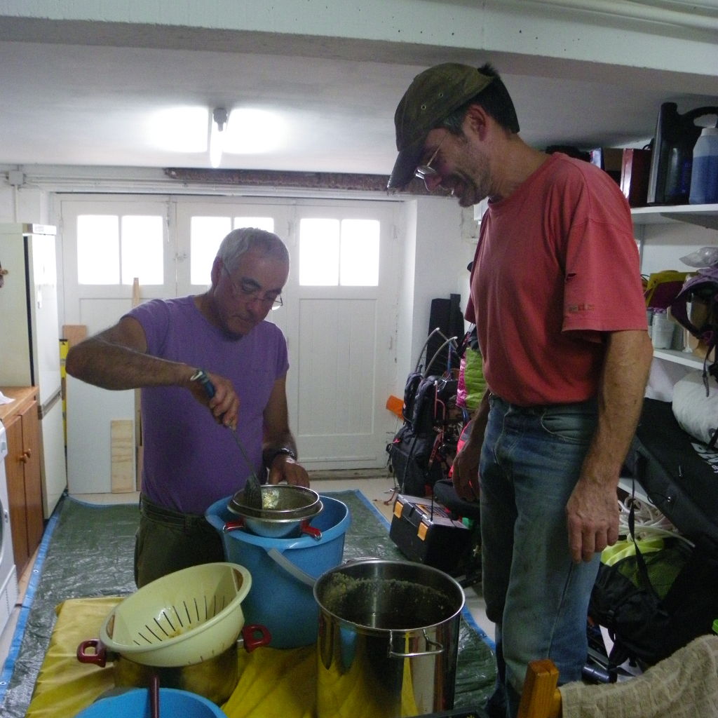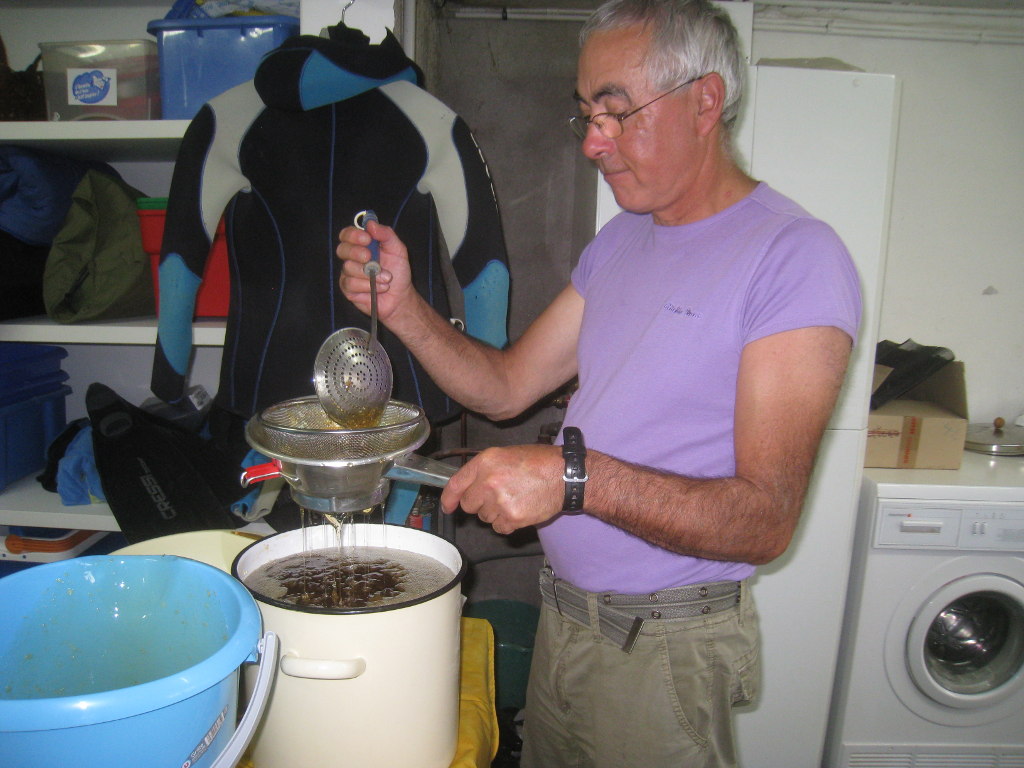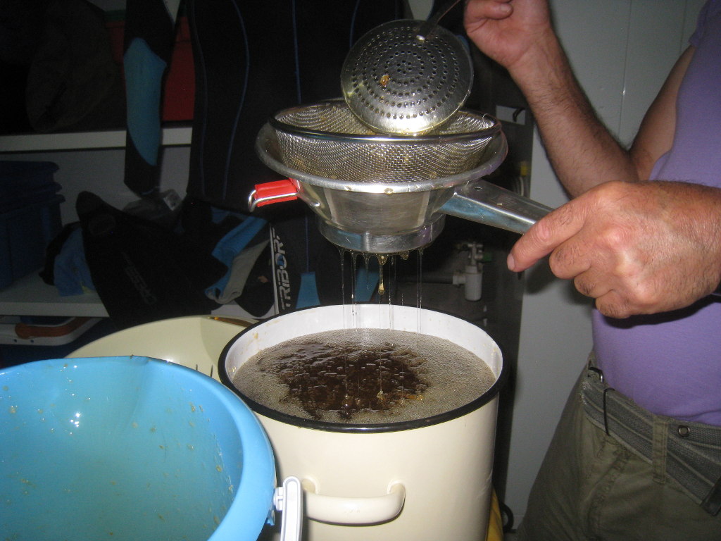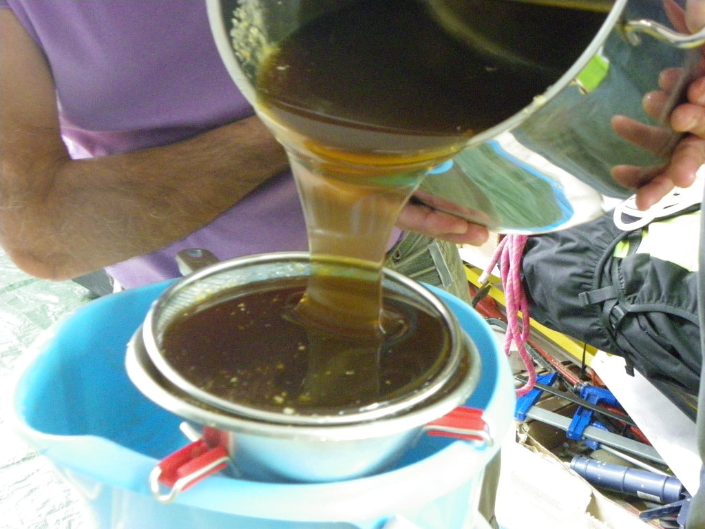 Nous ne résistons tout de même pas à la tentation, et nous remplissons un petit pôt chacun avec le filtrage des ustensiles :