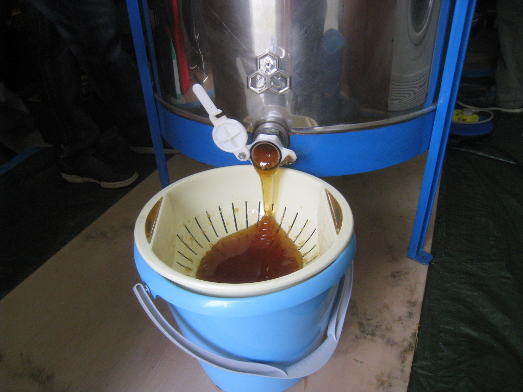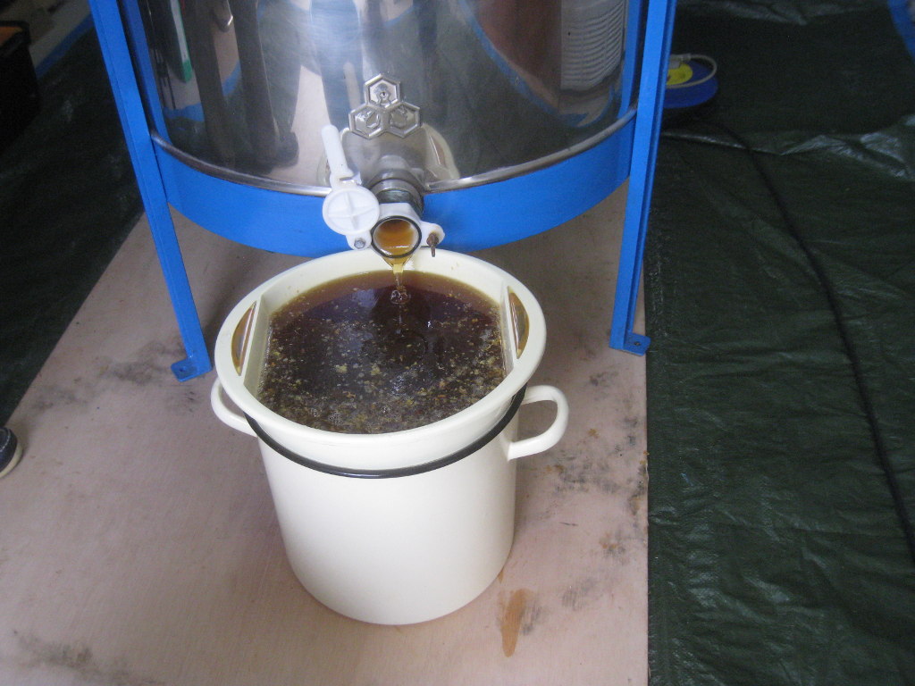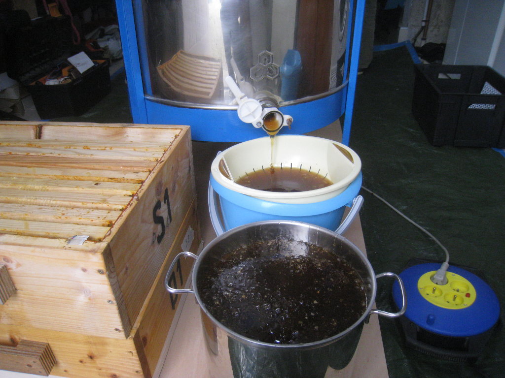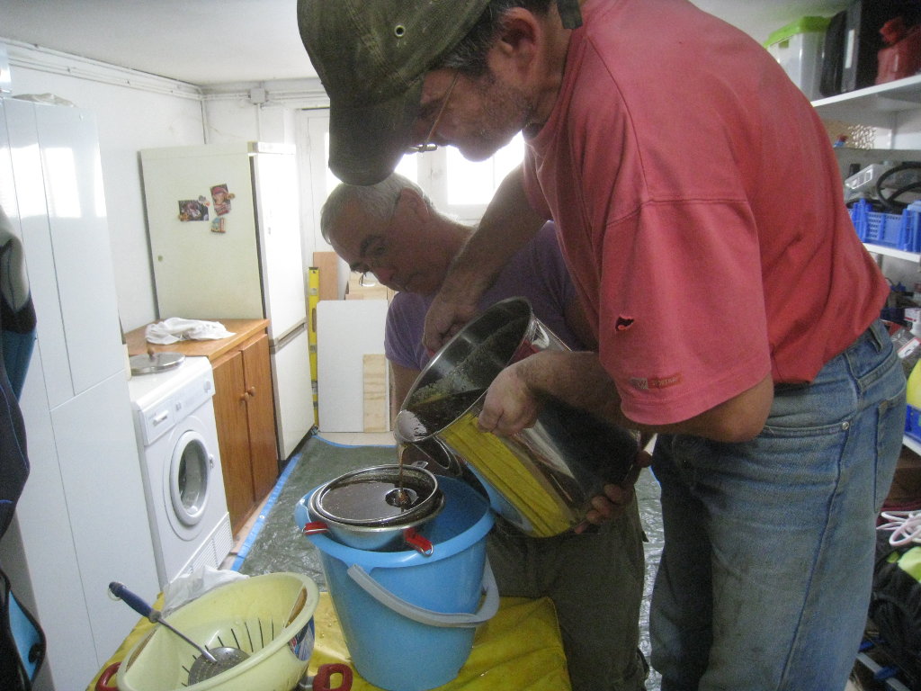Il ne reste plus qu'à laisser décanter le miel une semaine, puis nous passerons à la mise en pôt ...