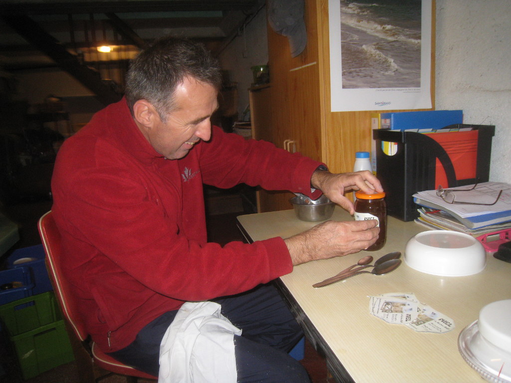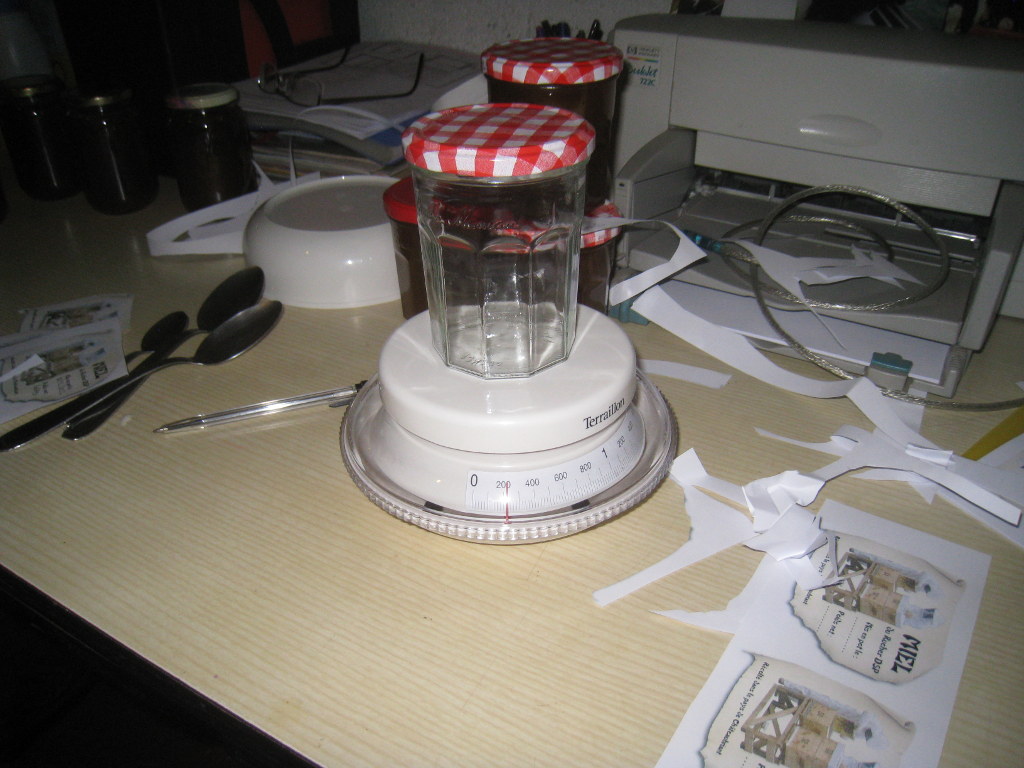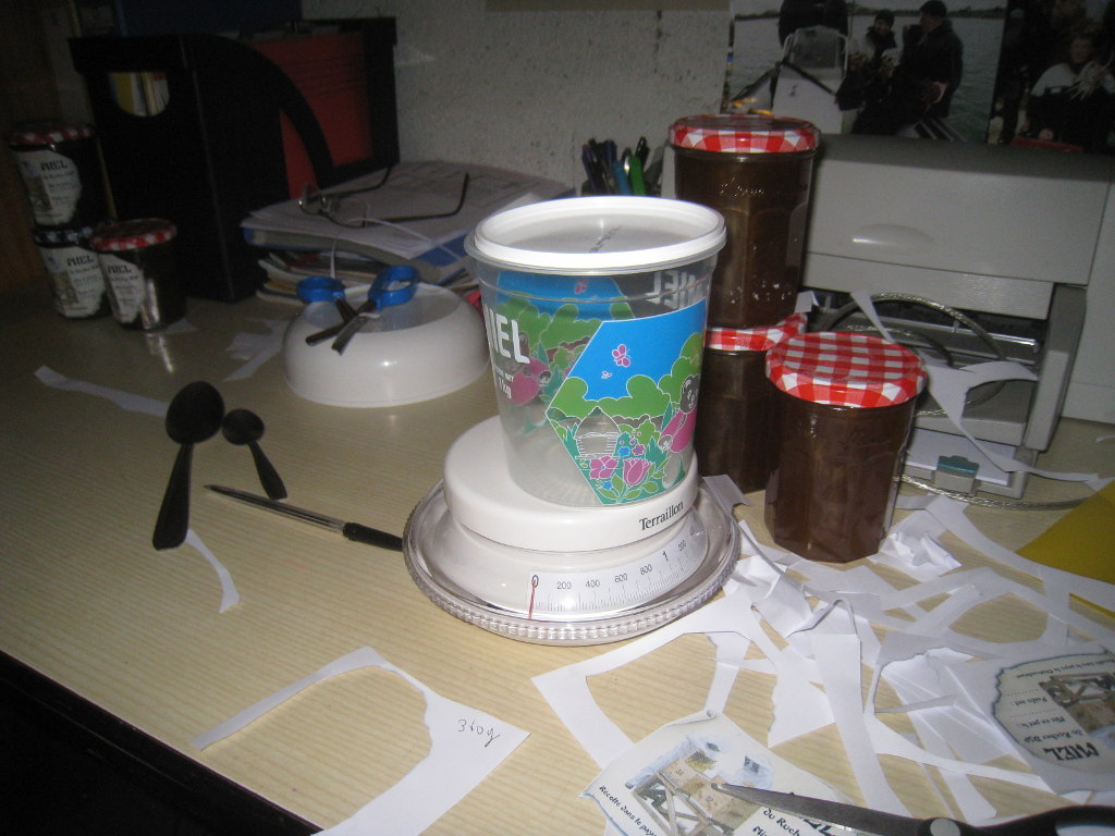 Le poste de pesage, découpe et collage (au lait) des étiquettes :