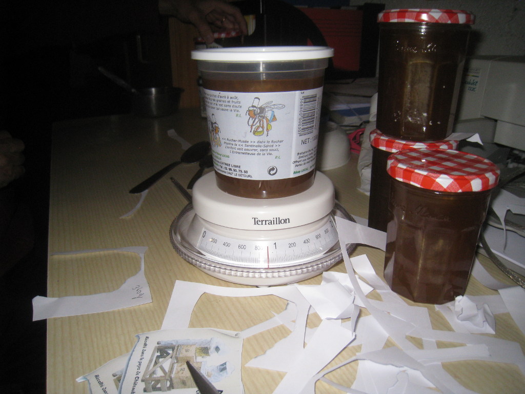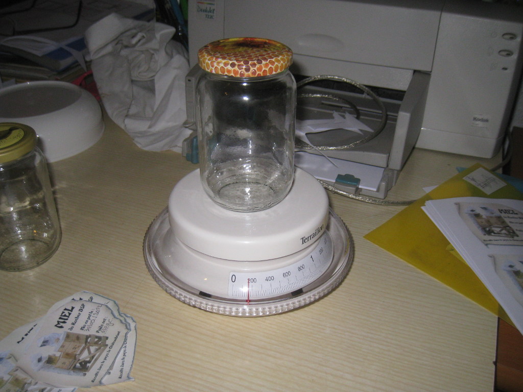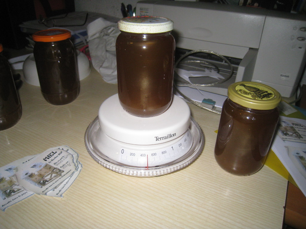 Enfin, il ne reste plus qu'à comptabiliser la quantité de miel mise en pot, et à admirer le résultat :