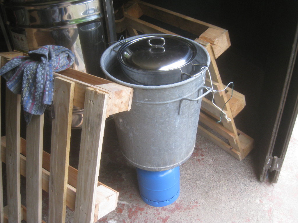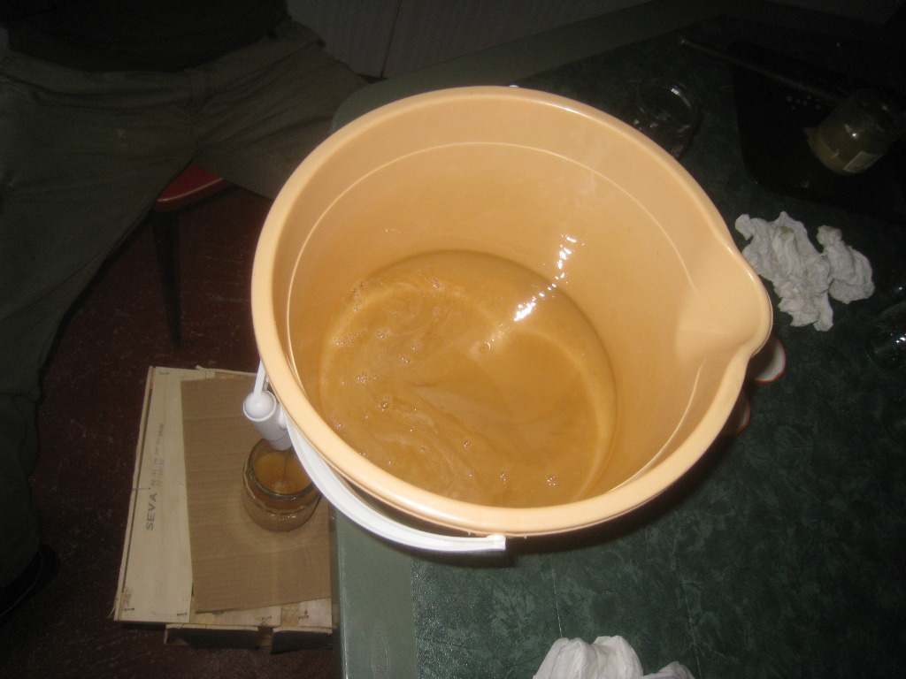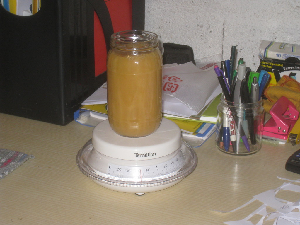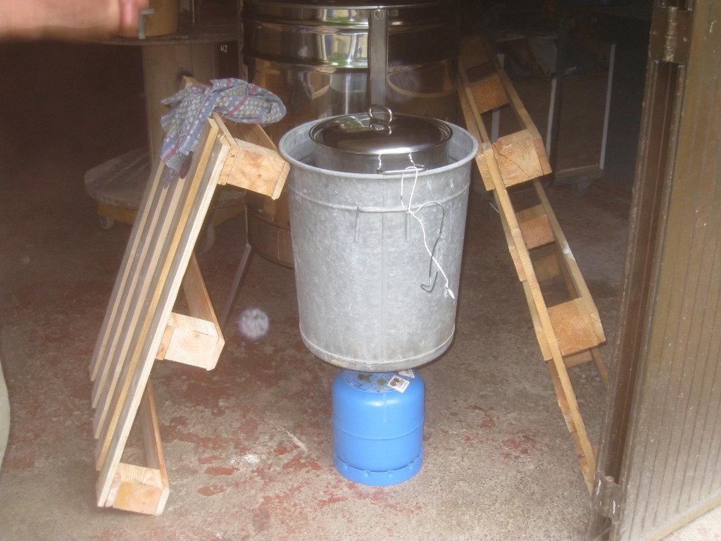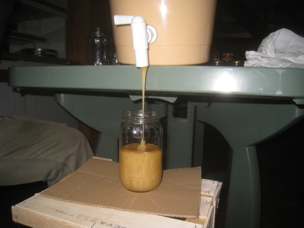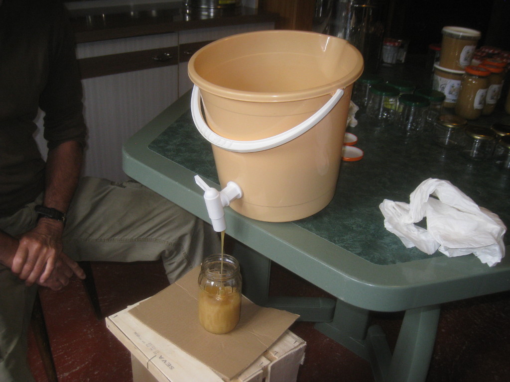 Si notre miel de pommier s'est laissé mettre en pot facilement (4 malheureux pots), notre miel toutes fleurs a très vitre cristallisé dans le décanteur. Il a donc fallu le réchauffer très légèrement et très doucement.