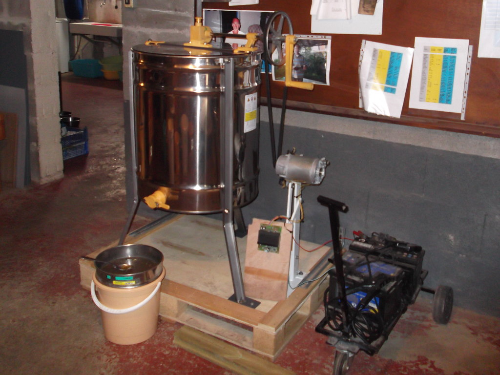 L'extraction se passe très bien, d'autant que Dany a profité de l'été pour motoriser notre extracteur manuel :