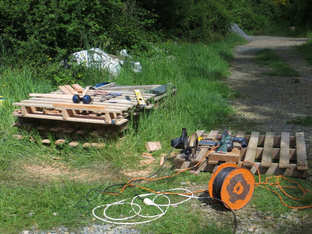 Jonglant avec les averses, je poursuis la construction de ruches, démarrée l'an passé :
