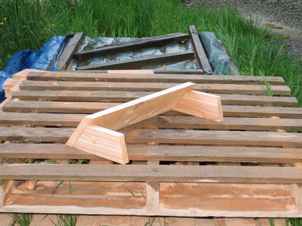 Je prépare aussi de quoi mettre en place un auvent sur chaque ruche et ruchette, pour protéger la planche d'envol de la pluie.