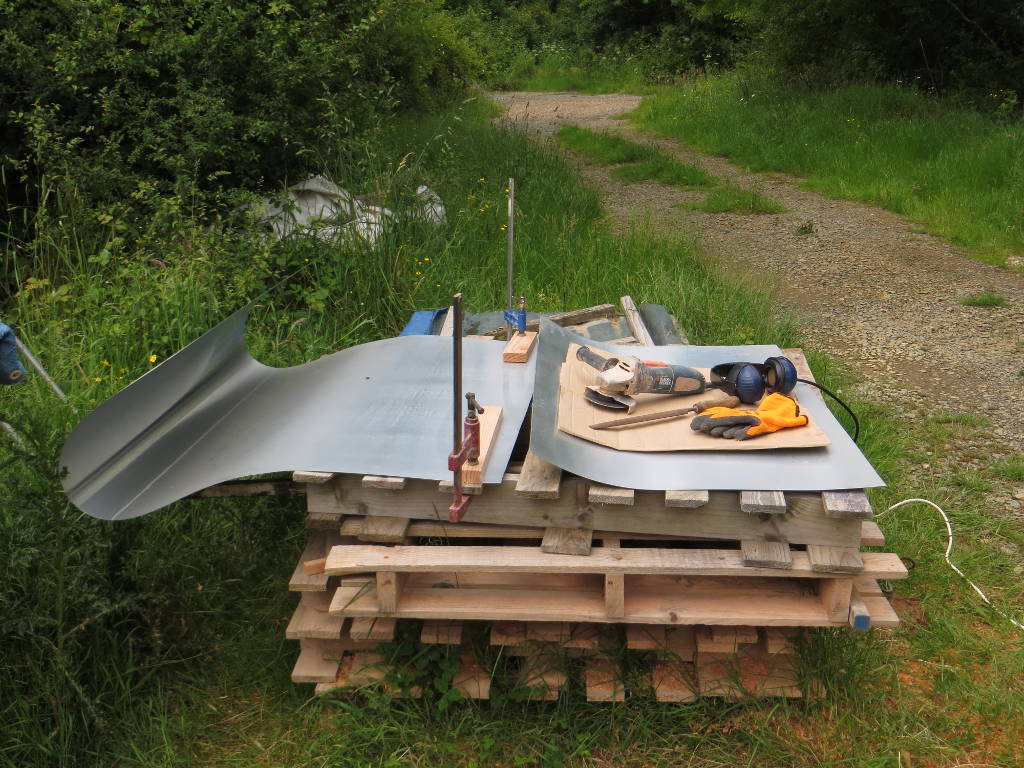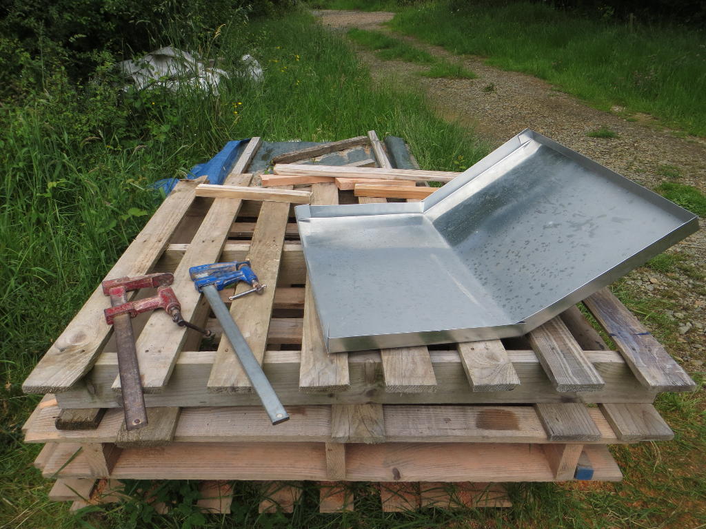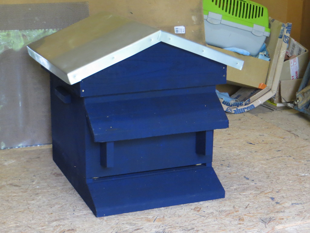 2014/05/26 : Construction (7)Mis à jour : 13 février 2016 | Imprimer | Affichages : 2026Fin de la construction de ma ruche P4, et transfert immédiat de l'essaim de la ruchette S1 : Détail de la mise en place du toit en zinc :