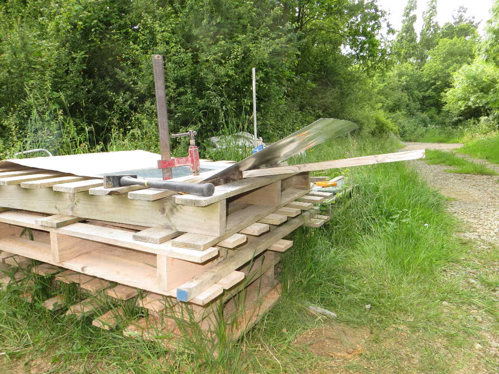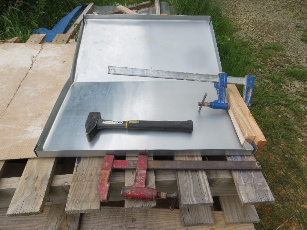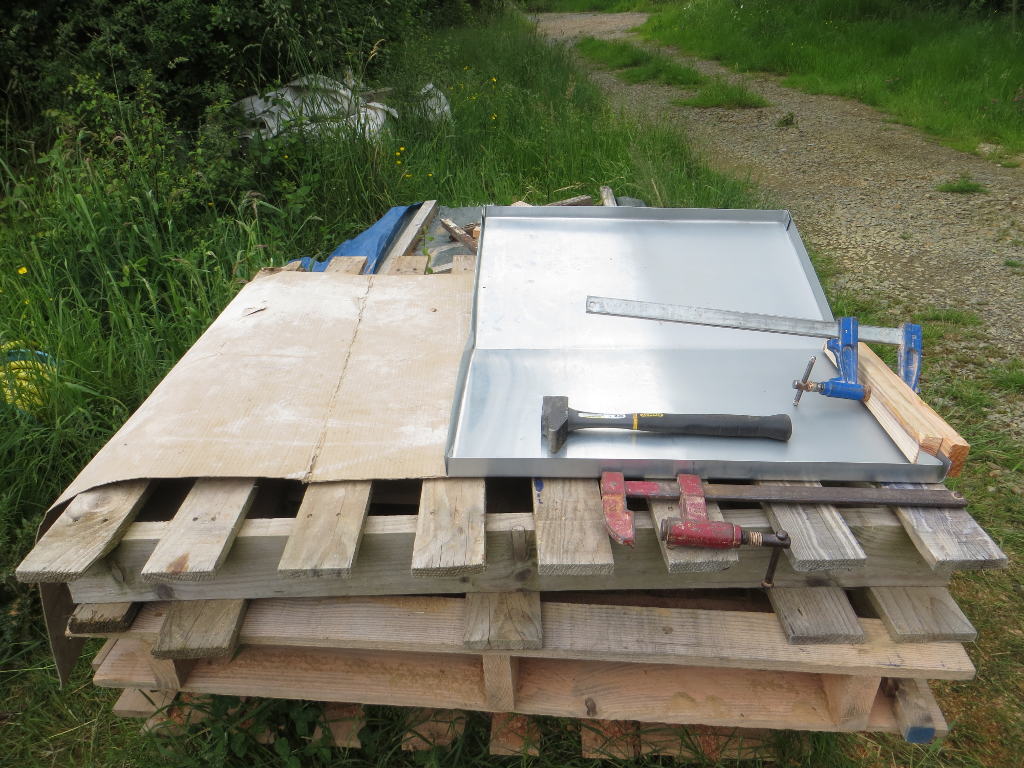 Mise en place des toits en zinc (bricolage avec les chutes pour la ruchette) :