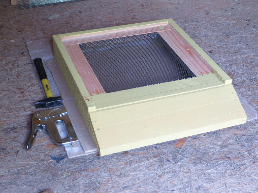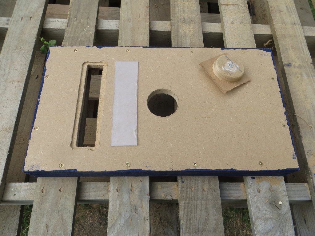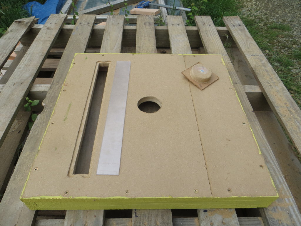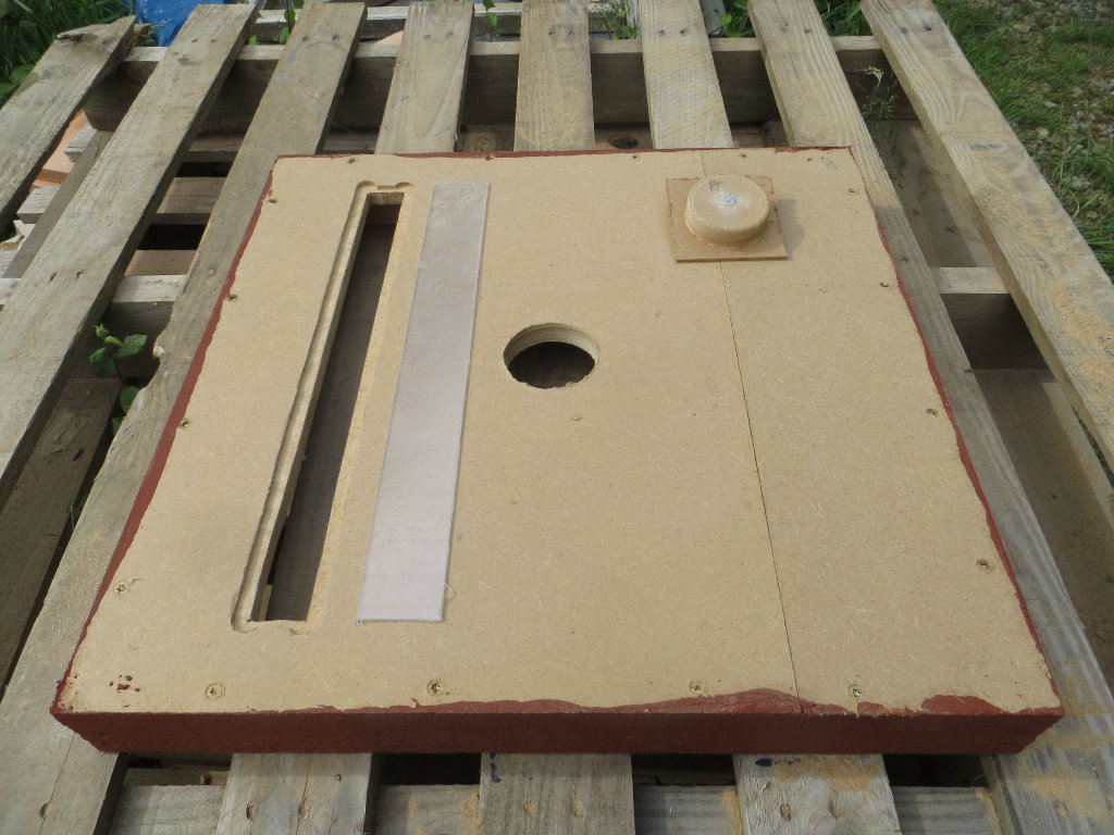 Fintion des couvre-cadres, avec le perçage du trou du nourrisseur, ainsi que celui de la fenêtre de visite, constituée d'une mince feuille de plastique transparent :