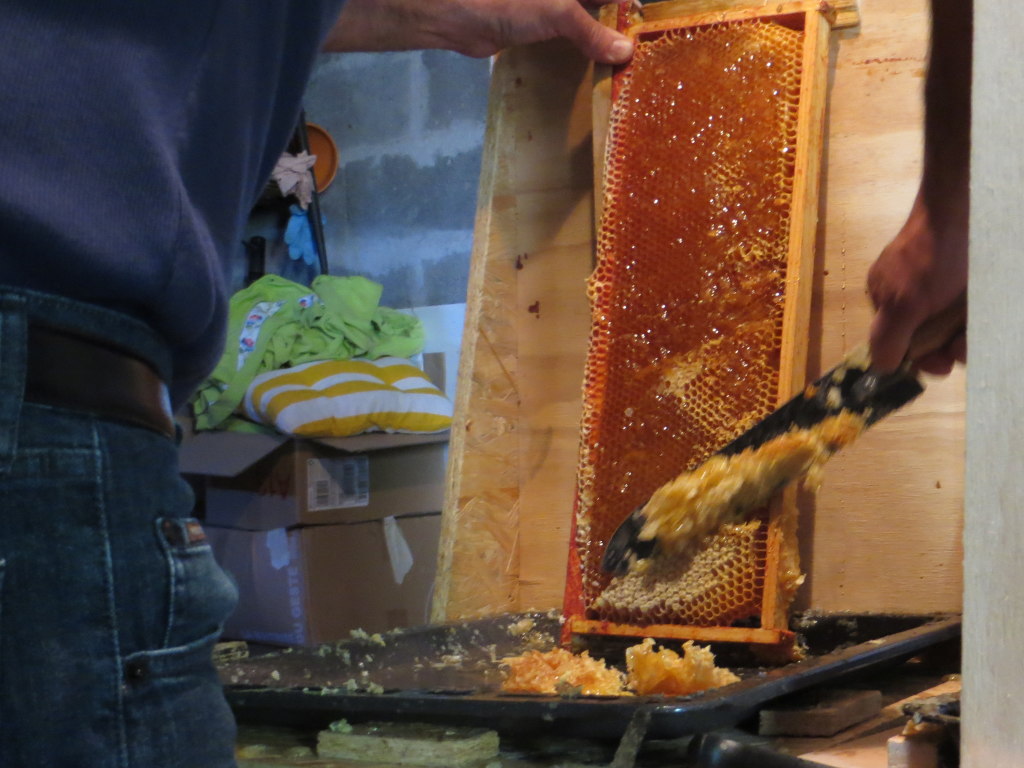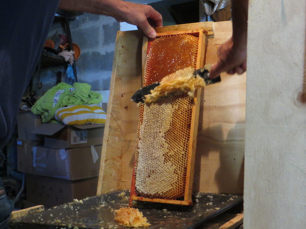 Sur le sur de LC, il y avait un champ de colza tout proche, et le miel en a tous les signes, déjà un peu cristallisé ici ou là dans les cadres.