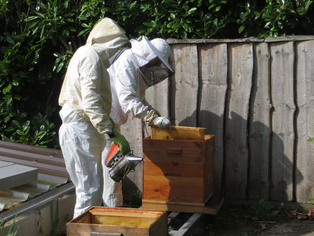 Ça ne commence pas très fort, car sur les sept hausses présentes, seules trois contiennent du miel.