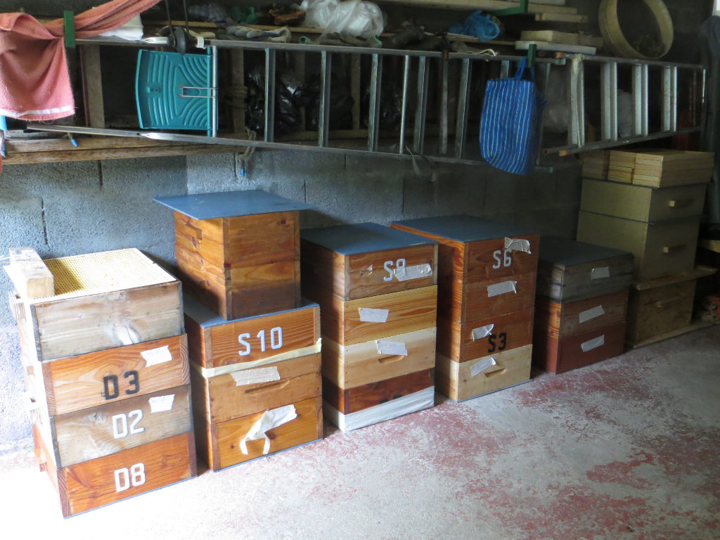 La ruche à Stéphane ainsi que ma ruche bleue n'ont rien dans leurs hausses, ce dont je me doutais vu leur activité moyenne.