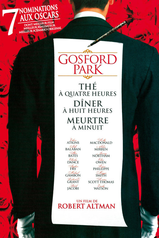 2002/03/20 : Gosford ParkMis à jour : 13 février 2016 | Imprimer | Affichages : 2613 > > Un film de Robert Altman (2002) ; Avec Michael Gambon, Kristin Scott Thomas, Maggie Smith, Kelly Macdonald, Clive Owen, Helen Mirren, Emily Watson, Jeremy Northam, Bob Balaban, Ryan Phillippe, Geraldine Somerville, Alan Bates, Richard E. Grant, Stephen Fry ... Lire la suite...
