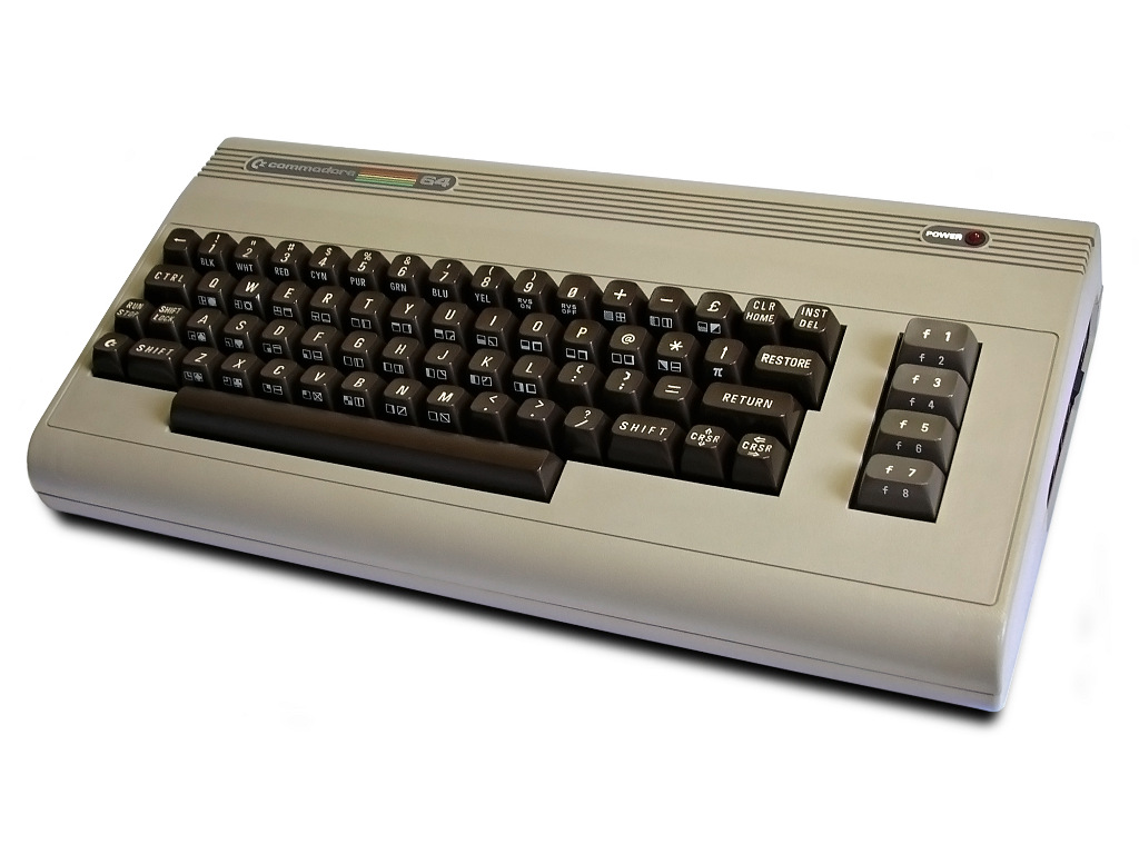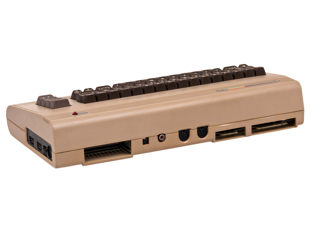 Ce petit ordinateur est compact (quoique les premières versions françaises nécessitaient un boitier d'interface PAL vers SECAM aussi gros que le C64 lui même) :